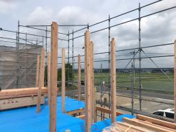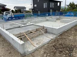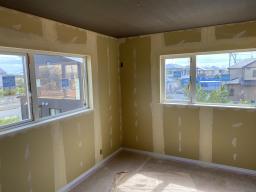 色麻町 I様邸新築工事 ※引渡済※ 2022年8月引渡済 工事前 基礎工事 建方工事 屋根工事 外壁工事 断熱工事 内部造作工事 仕上工事 完成・見学会 コンパクトで明るい玄関スペース 玄関内部、収納スペース。 リビングはかっこいい雰囲気に。 キッチンパネルはグリーンをチョイス!とても素敵です。 洗面室には別途カウンターを設置。家族で使っても余裕たっぷりです。 大きな鏡の独立メイクスペース。自分を磨く時間がさらに楽しくなりそうです♪ バスルームはラグジュアリーに。 階段は床よりやや暗いウォールナットを採用。リビングから2階へ。 天井とロールスクリーンの色を合わせて統一感を。 イエローのアクセントクロスは気分が上がります。 寝室はキッチン同様、グリーンをアクセントに。 黒でまとめたかっこいい外観!