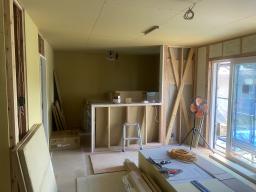 家づくりの現場公開中 色麻町 I様邸新築工事 ※引渡済※ 2022年8月引渡済 工事前 基礎工事 建方工事 屋根工事 外壁工事 断熱工事 内部造作工事 仕上工事 完成・見学会 コンパクトで明るい玄関スペース 玄関内部、収納スペース。 リビングはかっこいい雰囲気に。 キッチンパネルはグリーンをチョイス!とても素敵です。 洗面室には別途カウンターを設置。家族で使っても余裕たっぷりです。 大きな鏡の独立メイクスペース。自分を磨く時間がさらに楽しくなりそうです♪ バスルームはラグジュアリーに。 階段は床よりやや暗いウォールナットを採用。リビングから2階へ。 天井とロールスクリーンの色を合わせて統一感を。 イエローのアクセントクロスは気分が上がります。 寝室はキッチン同様、グリーンをアクセントに。 黒でまとめたかっこいい外観! 家づくりの現場公開中に戻る