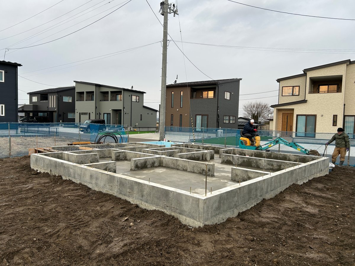 家づくりの現場公開中 TDタウン新しかま K様邸新築工事 2026年4月お引渡予定 工事前 地鎮祭を執り行いました 基礎工事 2025.12.23現在 202.12.23現在 2025.12.24現在 2025.12.24現在 2025.12.24現在 2025.12.24現在 2026.1.6現在 2026.1.9現在 2025.1.13現在 2025.1.19現在 建方工事 屋根工事 外壁工事 断熱工事 2025.2.16現在 内部造作工事 仕上工事 完成・見学会 家づくりの現場公開中に戻る