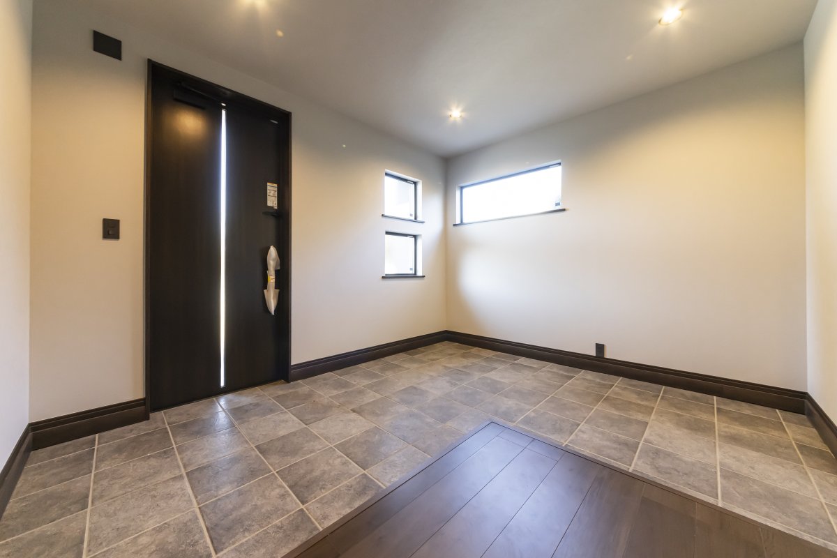 ✅入った瞬間に広がりを感じられるL型框の玄関&ホール