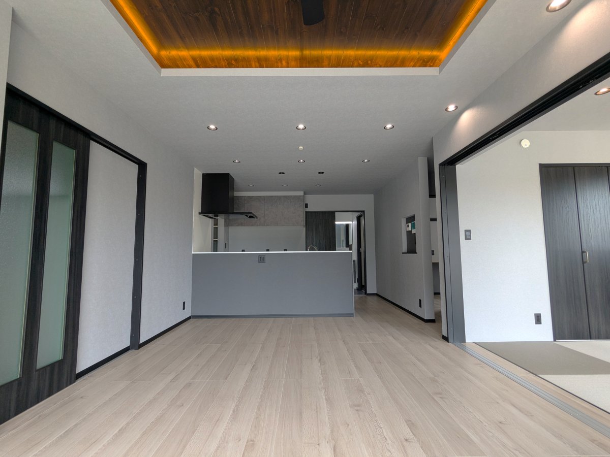✅リビングを広く感じさせる折り上げ天井