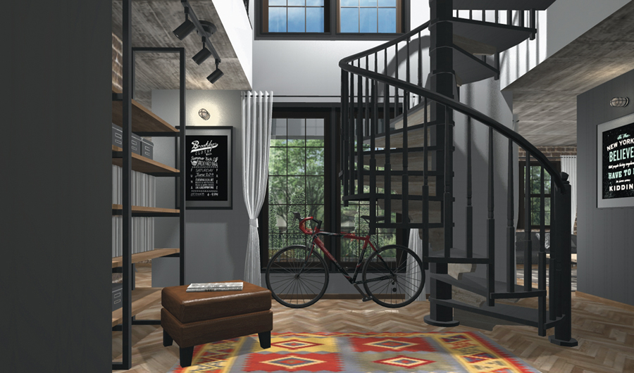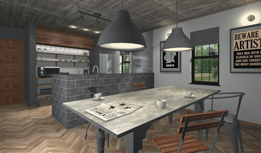 慌てることなく、 ちょっとしたおもてなしが可能です。螺旋階段も配されると、 ブルックリンらしいのびやかな開放感がアップします。