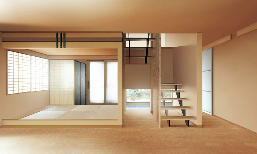 茶の間とデザイン階段