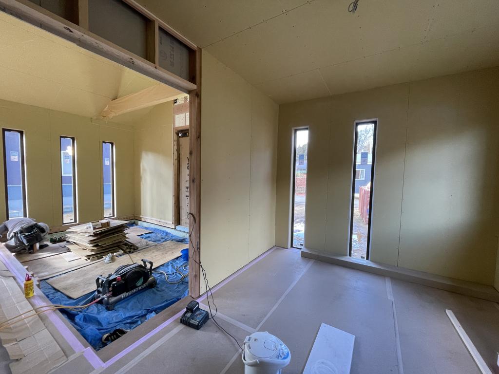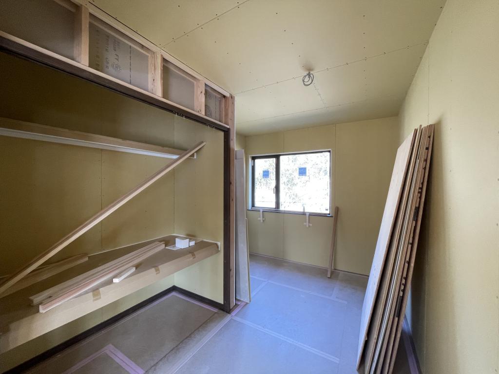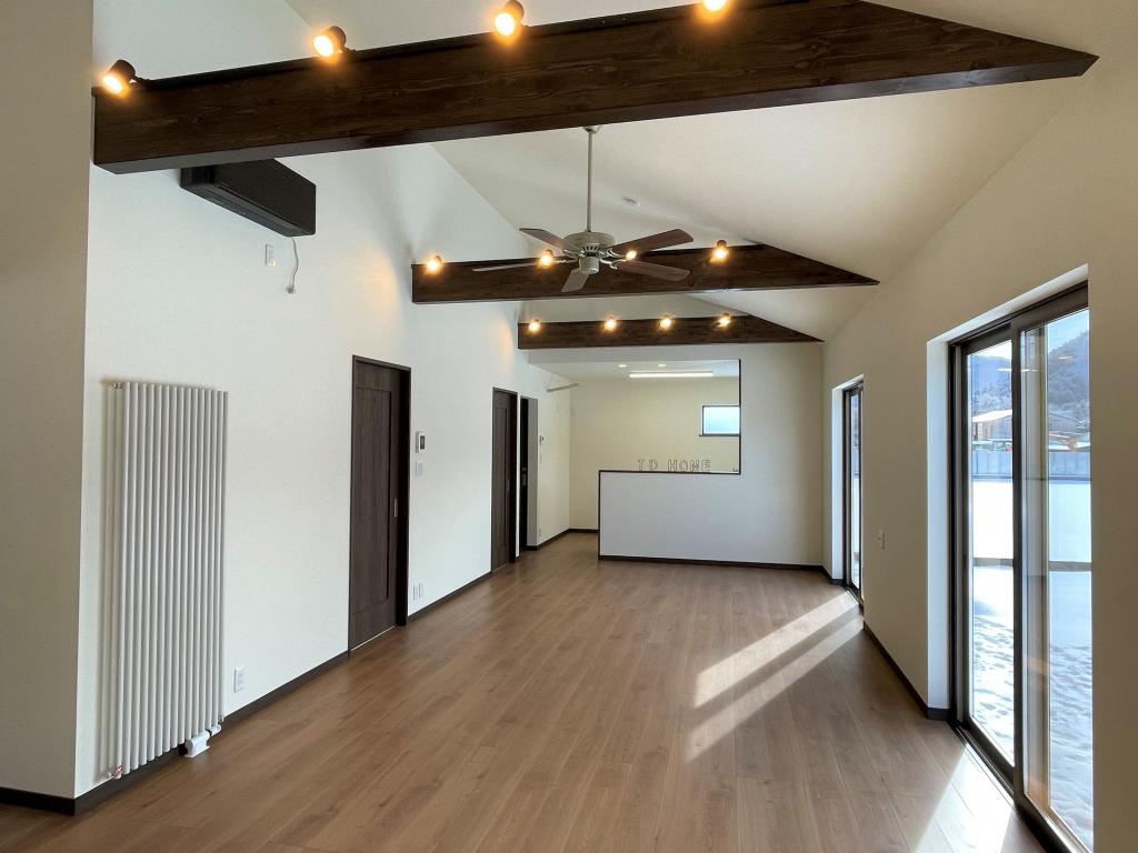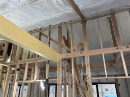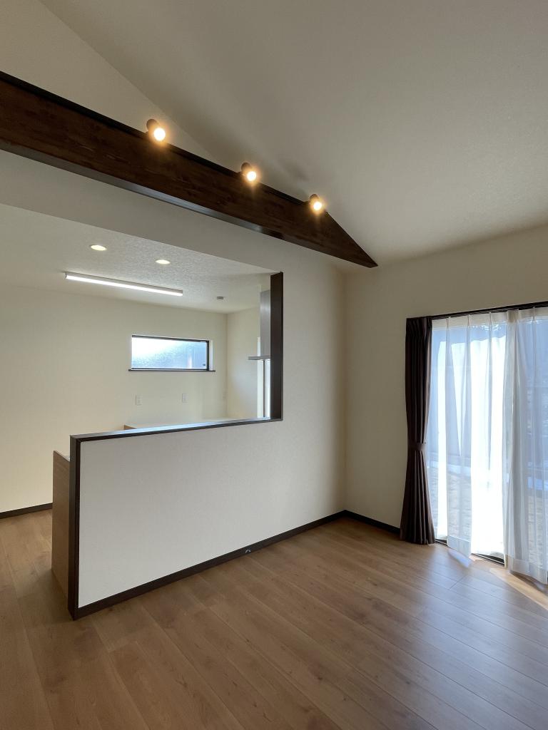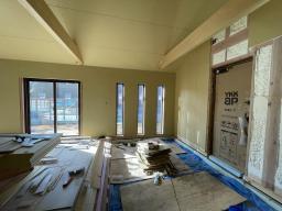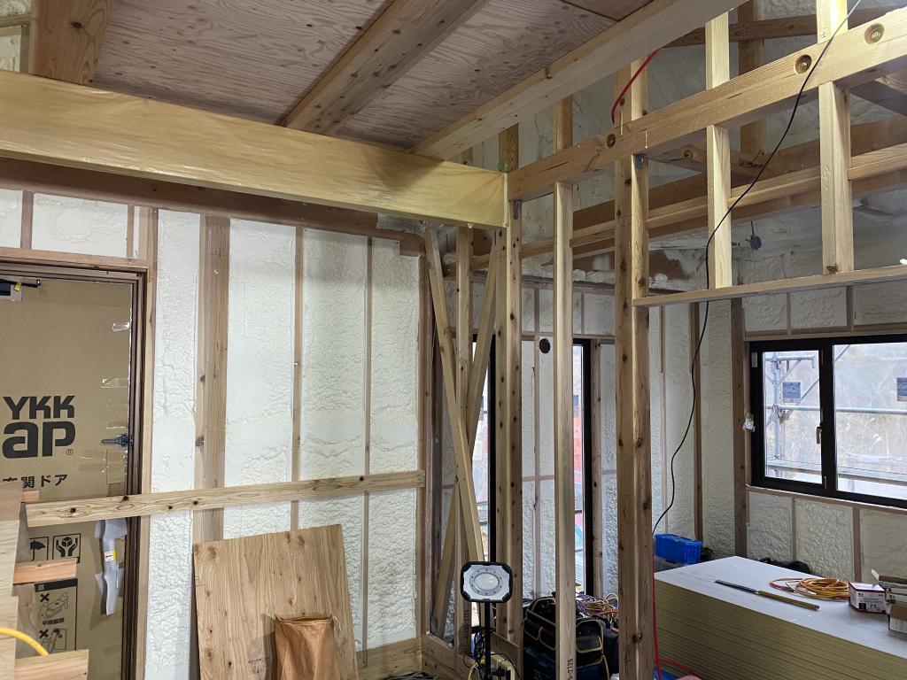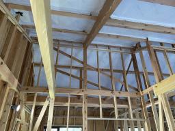 仙台市太白区 M様邸新築工事 ※引渡済※ 2023年2月引渡済 工事前 地鎮祭を執り行いました。 基礎工事 建方工事 こちらがリビングです リビングの梁。お部屋のアクセントです! 屋根工事 外壁工事 断熱工事 内部造作工事 仕上工事 完成・見学会