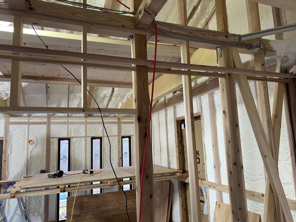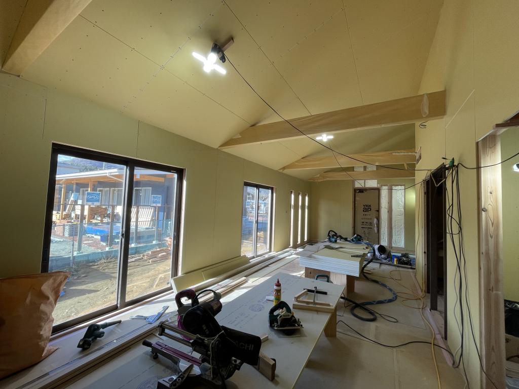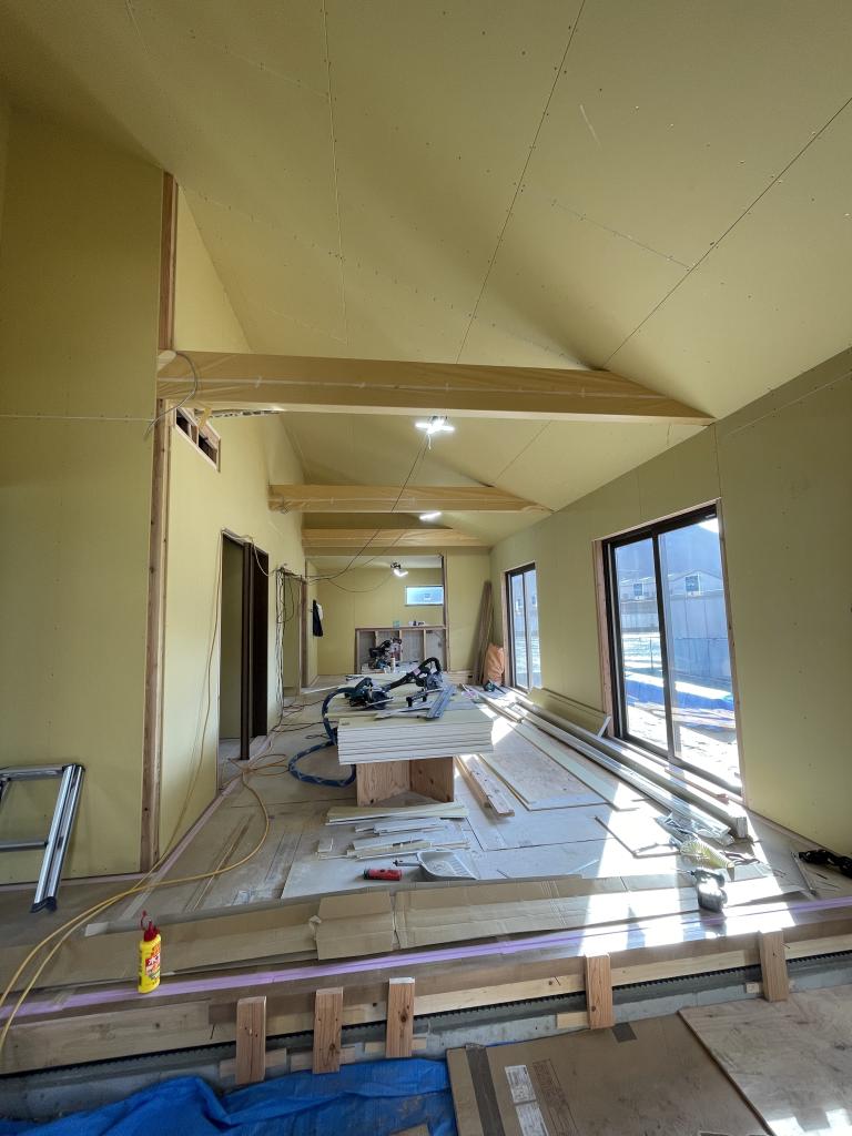 家づくりの現場公開中 仙台市太白区 M様邸新築工事 ※引渡済※ 2023年2月引渡済 工事前 地鎮祭を執り行いました。 基礎工事 建方工事 こちらがリビングです リビングの梁。お部屋のアクセントです! 屋根工事 外壁工事 断熱工事 内部造作工事 仕上工事 完成・見学会 家づくりの現場公開中に戻る