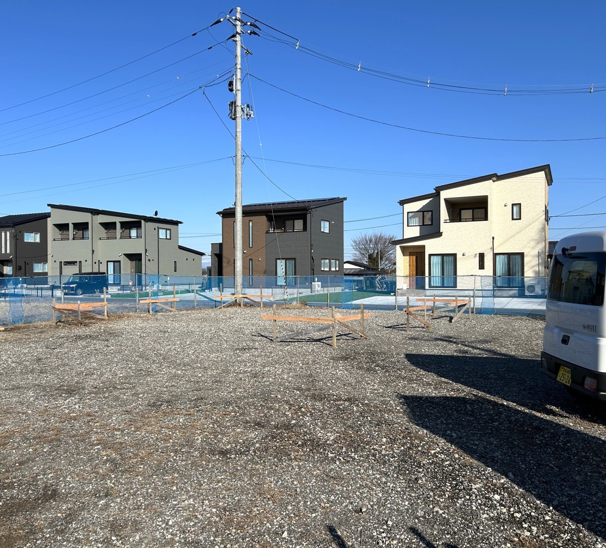 TDタウン新しかま K様邸新築工事 2026年4月お引渡予定 工事前 地鎮祭を執り行いました 基礎工事 2025.12.23現在 202.12.23現在 2025.12.24現在 2025.12.24現在 2025.12.24現在 2025.12.24現在 2026.1.6現在 2026.1.9現在 2025.1.13現在 2025.1.19現在 建方工事 屋根工事 外壁工事 断熱工事 2025.2.16現在 内部造作工事 仕上工事 完成・見学会