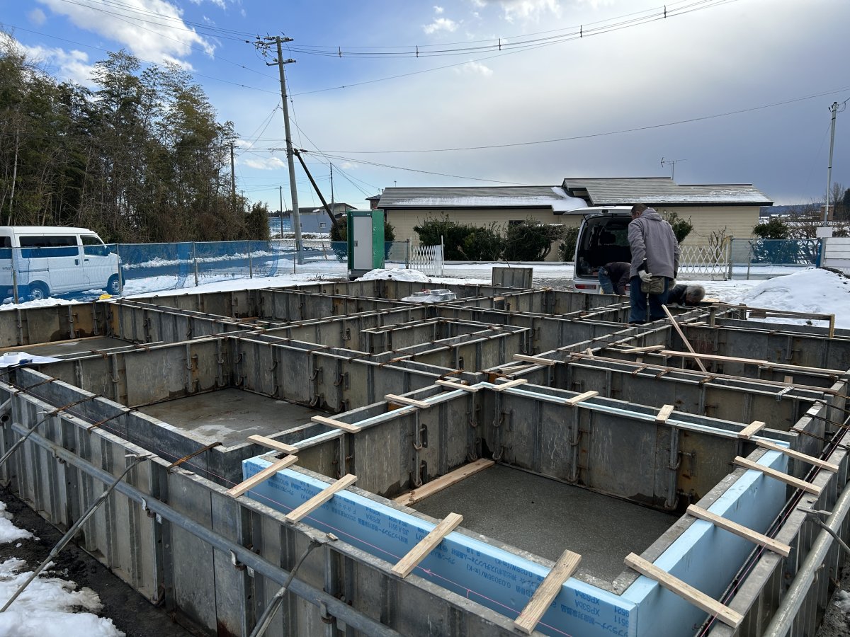 家づくりの現場公開中 TDタウン新しかま K様邸新築工事 2026年4月お引渡予定 工事前 地鎮祭を執り行いました 基礎工事 2025.12.23現在 202.12.23現在 2025.12.24現在 2025.12.24現在 2025.12.24現在 2025.12.24現在 2026.1.6現在 2026.1.9現在 2025.1.13現在 2025.1.19現在 建方工事 屋根工事 外壁工事 断熱工事 2025.2.16現在 内部造作工事 仕上工事 完成・見学会 家づくりの現場公開中に戻る